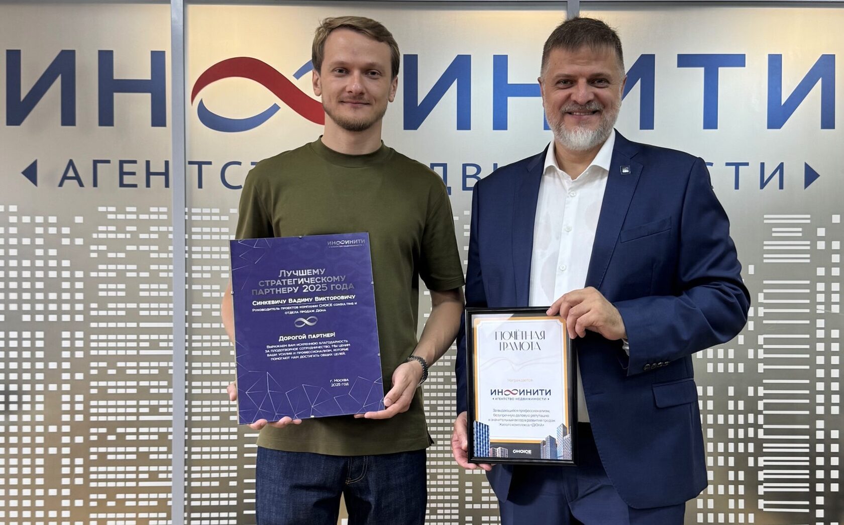 Нам вручили престижную награду «За выдающийся профессионализм, безупречную репутацию и значительный вклад в развитие продаж ЖК “ДЮНА”»